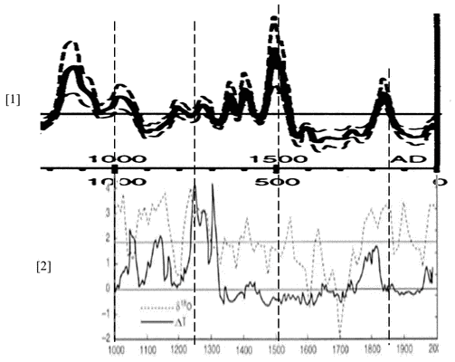 [8] Kitagawa at al. 1995: Climatic implications of δ13C variations in a Japanese cedar (Cryptomeria japonica) during the last two millennia. Geophysical Research Letters 22: 2155-2158. Bildquelle: Co2Science.