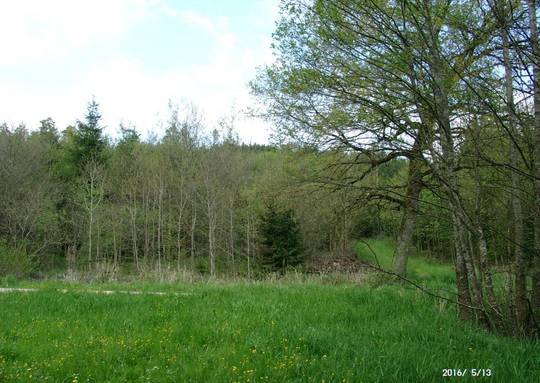 Wir wollen nun nicht den Versuch einer Wärmeinselbereinigung dieser Temperaturen unternehmen, sondern wir überprüfen die Abkühlung der Eisheiligen in der freien Fläche anhand der Vegetation. Dafür wählen wir das Frankenbachtal in Süddeutschland. Das Tal liegt zwischen den beiden Städten Aalen und Ellwangen auf 450 bis 470m NN. Am 3.ten Eisheiligentag 2016, im Süddeutschen „Servaz“ genannt, sah die Vegetation so aus wie auf dem folgenden Foto. Der Standort ist etwa 1 km von der nächsten kleinen Ansiedlung entfernt. Kurzum: Mitten in der Pampa Deutschlands.
