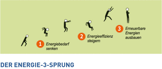 Orientierung für die Energiewende bietet das Prinzip des "Energie-Dreisprungs": Energie muss eingespart, herkömmliche Energieformen müssen effizienter genutzt und erneuerbare Energien ausgebaut werden. Im Rahmen ihrer Tätigkeit können Steuerberater an dieser Stelle großen Einfluss nehmen.