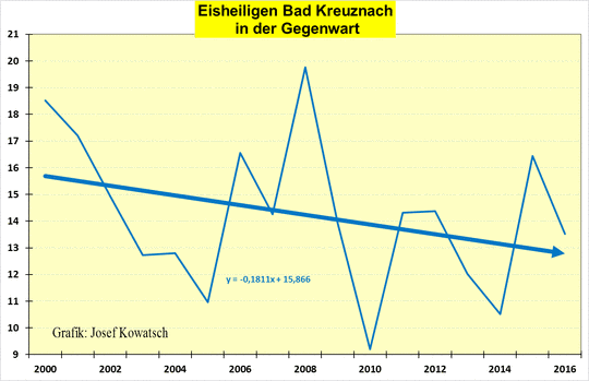 Anlass der Eisheiligen-Artikel war die Behauptung des Deutschen Wetterdienstes, dass diese fünf Tage laut DWD „in der Gegenwart“, „in jüngster Zeit“, „in den letzten Jahren“ immer wärmer würden und inzwischen kaum ein Unterschied mehr zum Monat Mai bestünde. Besonders im Süden wären die Eisheiligen „in jüngster Zeit“ zu „Heißheiligen“ oder gar „Schweißheiligen“ avanciert. Zur Klarstellung: Mit unseren beiden Artikeln wollten wir nicht den DWD als Ganzes bloßstellen, sondern nur die politisch besetzte Führungsriege, die öfters gegen die eigenen Daten argumentiert. Es wird Zeit, dass diese Führungsriege, insbesondere Vorstand Friedrich, die eigenen Daten zur Kenntnis nimmt.
