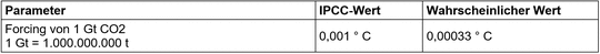 hätten die Bonner Politiker ohne die Kompensation das Weltklima um mindestens die folgenden Temperaturerhöhungen geschädigt: