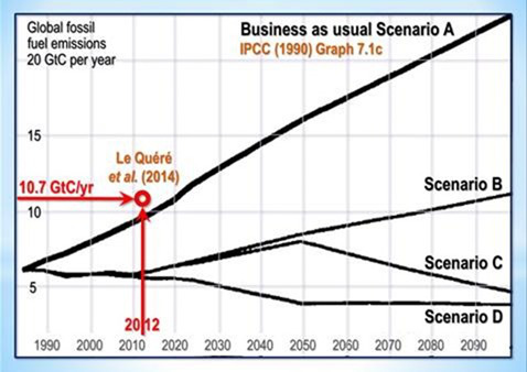 Soweit ich sehe, haben die faulen „Journalisten“ von Reuters niemals berichtet, dass die einzige IPCC-Prophezeiung, die hinter der Realität zurückgeblieben war, die globale CO2-Emissionsrate war. Der Gesamteffekt all jener internationalen Konferenzen war genau Null.