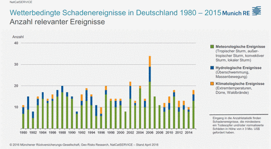 [2] Munich Re: April 2016 NatCatSERVICE Schadenereignisse in Deutschland 1980 – 2015