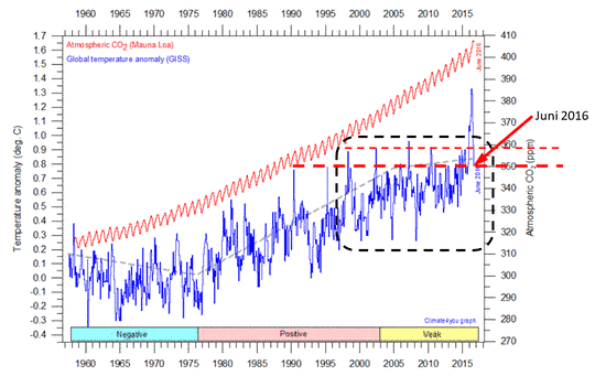 Bild 11 Globaltemperatur GISS-Datensatz 1956 – 2016 mit CO2-Verlauf. Quelle Climate4you