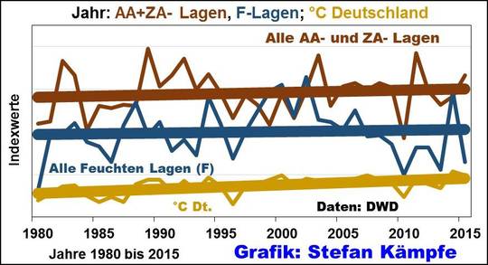 Diese Richtlinien sind sehr allgemein und können nicht jede mögliche Situation abdecken. Nehmen Sie deshalb bitte nicht an, dass das EIKE Management mit Ihnen übereinstimmt oder sonst Ihre Anmerkungen gutheißt. Wir behalten uns jederzeit das Recht vor, Anmerkungen zu filtern oder zu löschen oder zu bestreiten und dies ganz allein nach unserem Gutdünken. Wenn Sie finden, dass Ihre Anmerkung unpassend gefiltert wurde, schicken Sie uns bitte eine Mail über "Über Uns->Kontakt"Wenn sich seit 1980 mit der Objektiven Wetterlagenklassifikation schon bis zu über 41% der Variabilität der Jahrestemperaturen erklären lassen, so stellt sich die Frage, was die übrigen knapp 59% verursacht. Die jährliche Sonnenscheindauer erklärt knapp 30%. Wenn man nun noch Sonnenaktivität und vor allem die WI- Effekte berücksichtigt, so bleibt für CO2, dessen Absorptionsbanden lange schon gesättigt sind, Nichts mehr übrig.