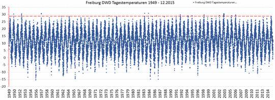 Bild 9 DWD Tagestemperaturen Freiburg (Breisgau) von 1949 bis Dez 2015