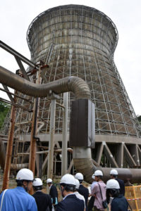 Kühlturm des Matsukawa geothermischen Kraftwerks, 46 Meter hoch.