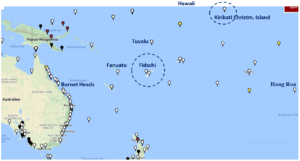 Bild 2 Pazifik, Lage von Pegelstationen. Quelle: PSMSL Catalogue Viewer
