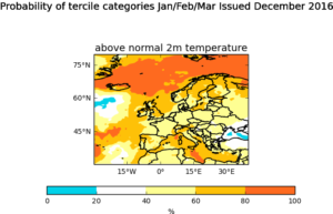 Fazit: Die Prognosesignale sowie die Vorhersagen der Wetterdienste und Institute bleiben sehr widersprüchlich. Es deuten sich aber zumindest einige merklich kältere Phasen im Hochwinter 2017 an, besonders im Januar, zeitweise auch mit nördlichen Strömungsanteilen eher nasskalt; doch insgesamt fällt dieser mit erhöhter Wahrscheinlichkeit normal bis etwas zu mild aus, wenngleich etwas weniger, als in den Vorjahren. Zumindest in den Mittelgebirgen (über 600 Meter) könnte ab Anfang Januar für längere Zeit gut Wintersport möglich sein und auch im Tiefland öfter mal Frost und Schnee herrschen. Geschätzte Januar-Monatsmitteltemperatur 2017 für Erfurt-Bindersleben (Mittel 1981- 2010 minus 0,3°C) -1,5 bis +2,5°C (etwas zu kalt bis deutlich zu mild). Für Feb. 2017 lässt sich noch kein Temperaturbereich schätzen, doch ist ein zu milder Februar momentan noch wahrscheinlicher, als ein zu kalter.