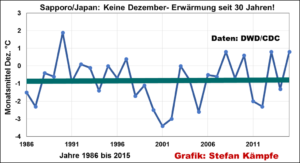 Abb. 5: Kaum Dezember- Erwärmung seit 30 Jahren (klimatisch relevanter Zeitraum) in der ehemaligen Winterolympiastadt Sapporo.