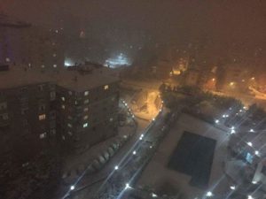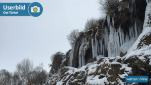 Abb. 6 bis 8: Ein Hoch über Südosteuropa lenkt Kaltluft nach Kleinasien (Quelle: DWD). Dezemberkälte in Anatolien und abendliches Schneetreiben im normalerweise milden Istanbul (Quelle: wetteronline/anatolien 86 und Burak Boztepe.