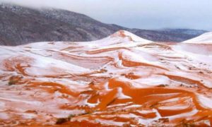 Abb. 9 bis 11: Wetterlage am 21.12.2016 (Quelle: Metoffice); nächtliches Schneegestöber in Norditalien (Quelle: Marco Kaschuba/wetteronline), und algerischer Wüstenschnee (Quelle: Journal Alternative Medien).