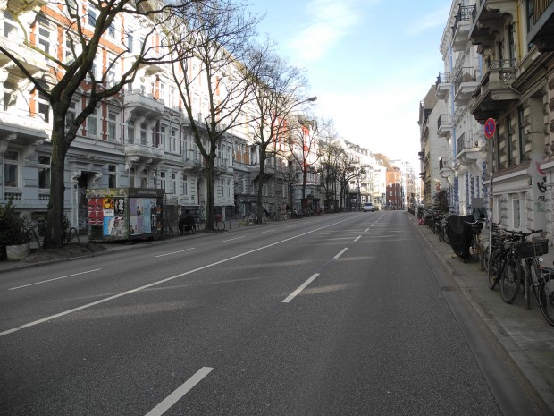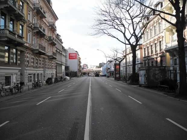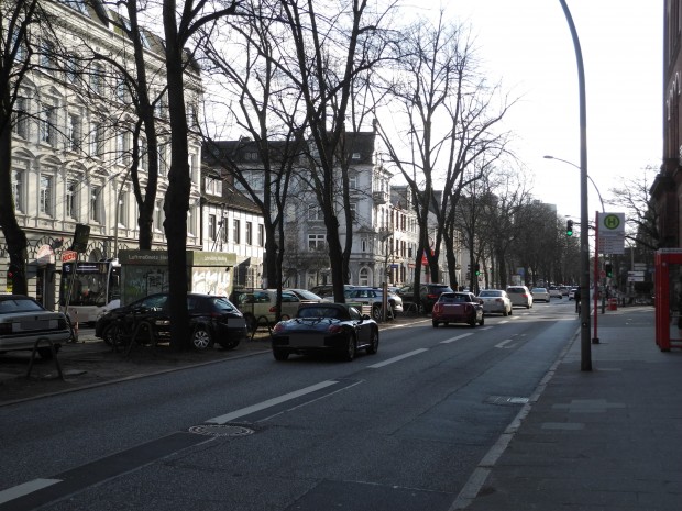 »Die damalige rot-grüne Regierung kam auf die sensationelle Idee, zwei der vier Spuren in Busspuren zu verwandeln, was selbstverständlich zu einem völligen Verkehrsinfarkt geführt hat. Die danach unter der Führung der CDU und Bürgermeister von Beust gewählte Regierung revidierte diese Entscheidung, erließ aber ein bis heute gültiges Tempolimit von 30 km/h auf dieser Strecke, das auch mittels zweier fester Geschwindigkeitskontrollen („Blitzer“) durchgesetzt wird, die die Luftmessstation auf beiden Seiten wunderschön einrahmen.«