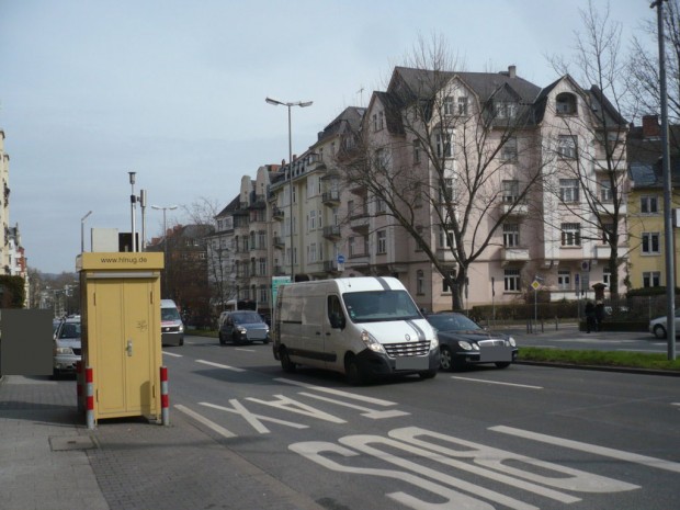 »Die Fahrzeuge bremsen selbstverständlich vor dem Blitzer und beschleunigen danach wieder. Meine Fotos konnte ich heute übrigens völlig unbehelligt und unter Polizeischutz anfertigen. Die Stresemannstraße war aufgrund einer Demonstration von der Polizei gesperrt worden, sodass auf meinen Bildern lediglich Polizeifahrzeuge zu sehen sind. Muss darüber hinaus eigentlich betont werden, dass die Luftmessstation direkt am Fahrbahnrand steht und die Straße durch eine enge Häuserschlucht führt?«