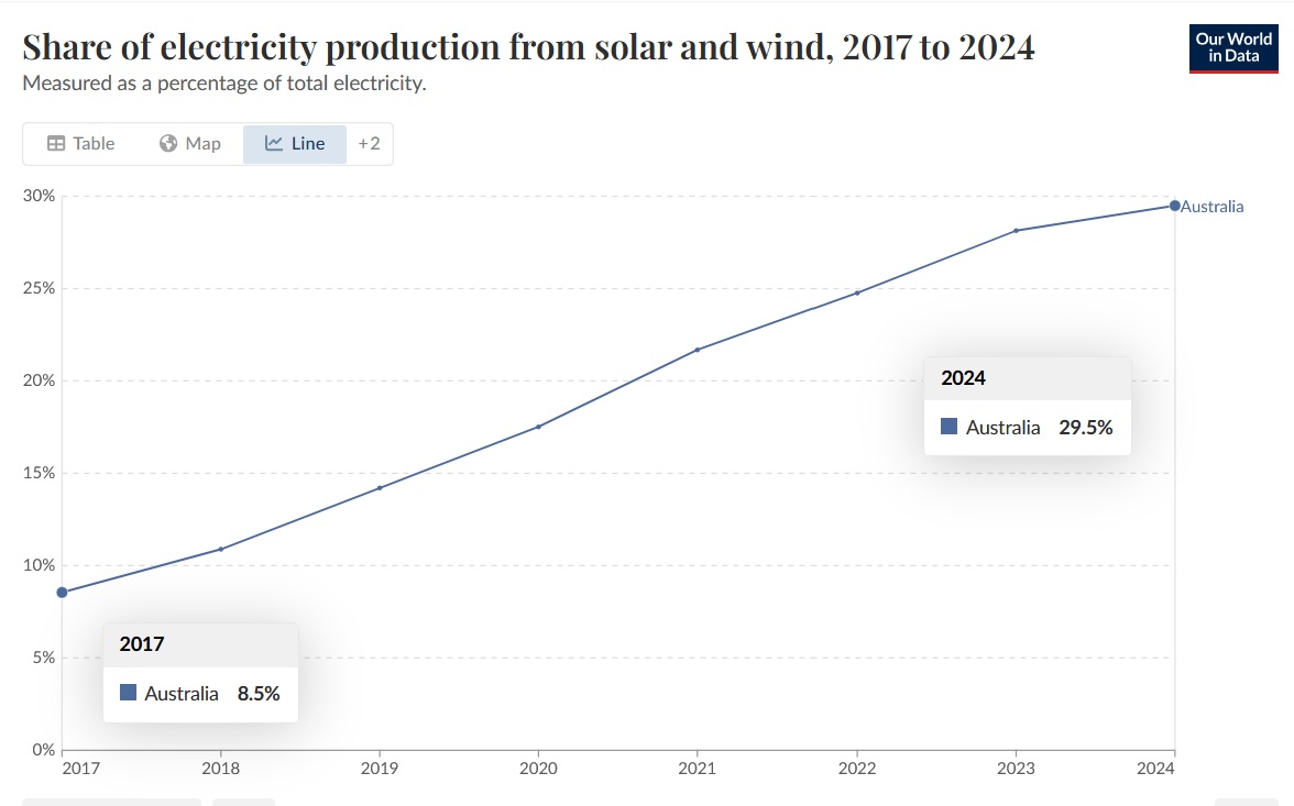 Die Subventionen für Wind- und Sonnenenergie werden gekürzt und Wind- und Sonnenenergie baut ihren Anteil am Strommix in Australien aus.