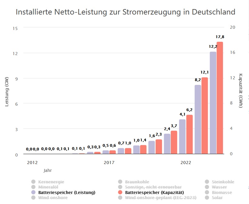 Zur Aufrechterhaltung der Stromerzeugung müssen jedoch in 2030 im Jahresmittel Stromspeicher mit einer Kapazität von 435 GWh/Tag bzw. einer Leistung von 18 GW zur Verfügung stehen.