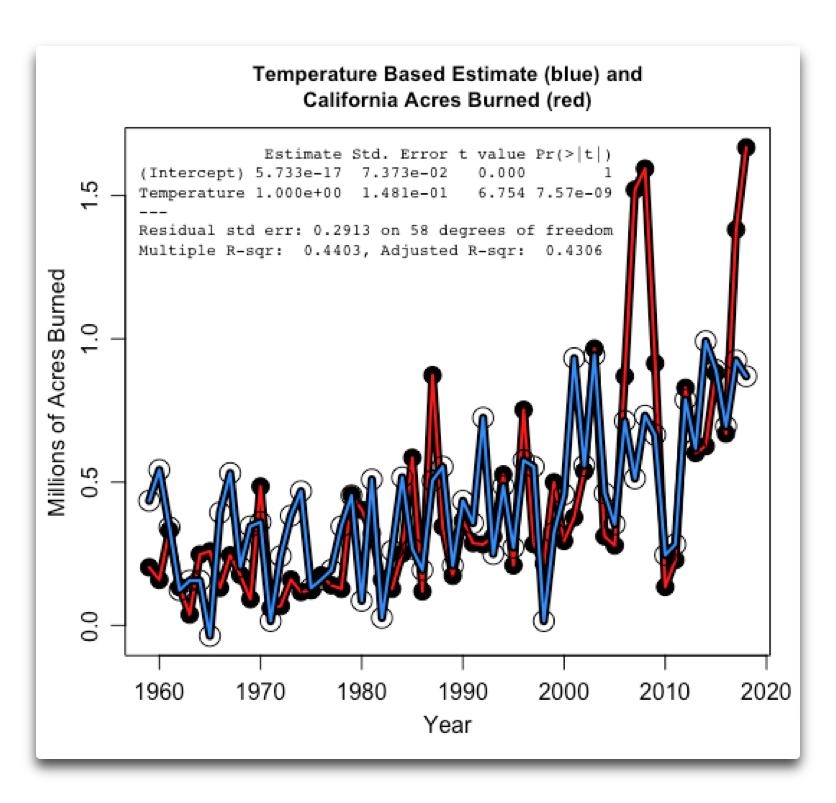 Link: https://wattsupwiththat.com/2018/11/14/california-temperatures-and-acres-burned/