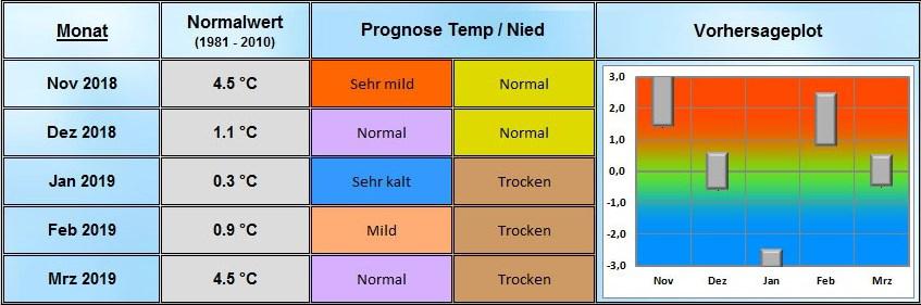 LARS THIEME (langfristwetter.com) Vorhersage von Anfang November 2018: Dezember normal, Januar sehr kalt, Februar etwas zu mild. Winter insgesamt etwa normal. Die Prognose bezieht sich vorrangig auf Mittel- und Nordostdeutschland: