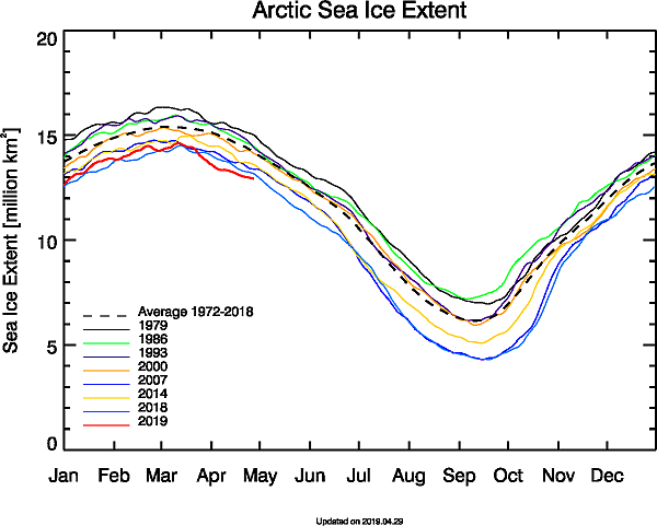 Satelliten messen täglich und machen Bilder: Die Eisbedeckung schwankt im Rhythmus der Jahreszeiten um gut 10 Mio qkm. Diese Fläche entspricht mehr als dem doppelten aller EU-Länder.Da von „zu wenig altem Eis“ zu sprechen ist lächerlich.