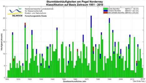 Abb.4 : Sturmfluten an der Nordsee – 1900-2019 (nachzitiert nach B. Hublitz [13] )