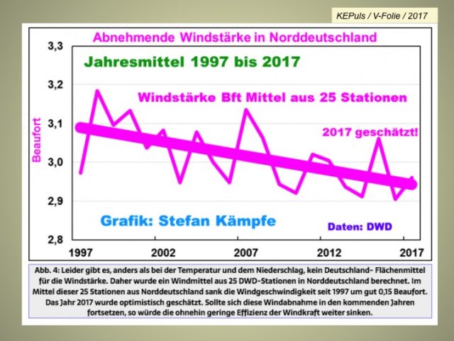 Die Daten des Deutschen Wetterdienstes (DWD) zeigen eine säkulare Wind-Abnahme seit 1879 in der Deutschen Bucht :