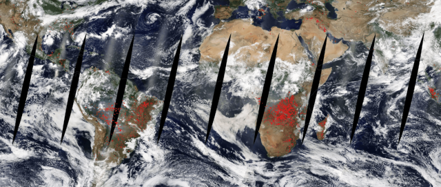Nun könnte man einwenden, dass die diesjährigen Feuer im Amazonas-Gebiet eben eine außergewöhnliche Situation darstellen, weil soviel brennt, wie seit 2013 nicht mehr, wie es in den Pressemeldungen heißt. Es heißt so, weil es die MODIS-Daten der NASA, die Grundlage dieser Behauptung sind, erst seit effektiv 2013 gibt. Tatsächlich gab es vor 2013 heftigere Feuer im Regenwald des Amazonas. Die Jahre 2004 und 2005 waren besonders schlimm, passend zum El Nino der Jahre 2004 und 2005. Die derzeitigen Feuer sind also aus historischer Perspektive NICHTS Außergewöhnliches. Sie sind auch nicht die schlimmsten Feuer und die verbreitetsten und zahlreichsten Feuer, die es derzeit auf der Erde gibt.