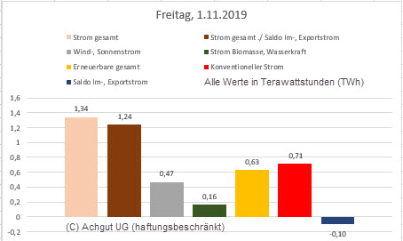 Freitag, 1.11.2019: Anteil Erneuerbare an der Gesamtstromerzeugung 47,01 Prozent