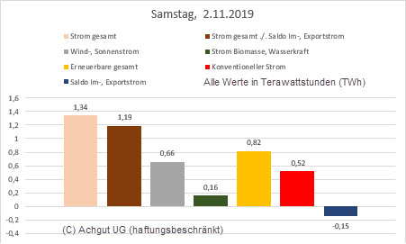 Samstag, 2.11.2019: Anteil Erneuerbare an der Gesamtstromerzeugung 61,19 Prozent