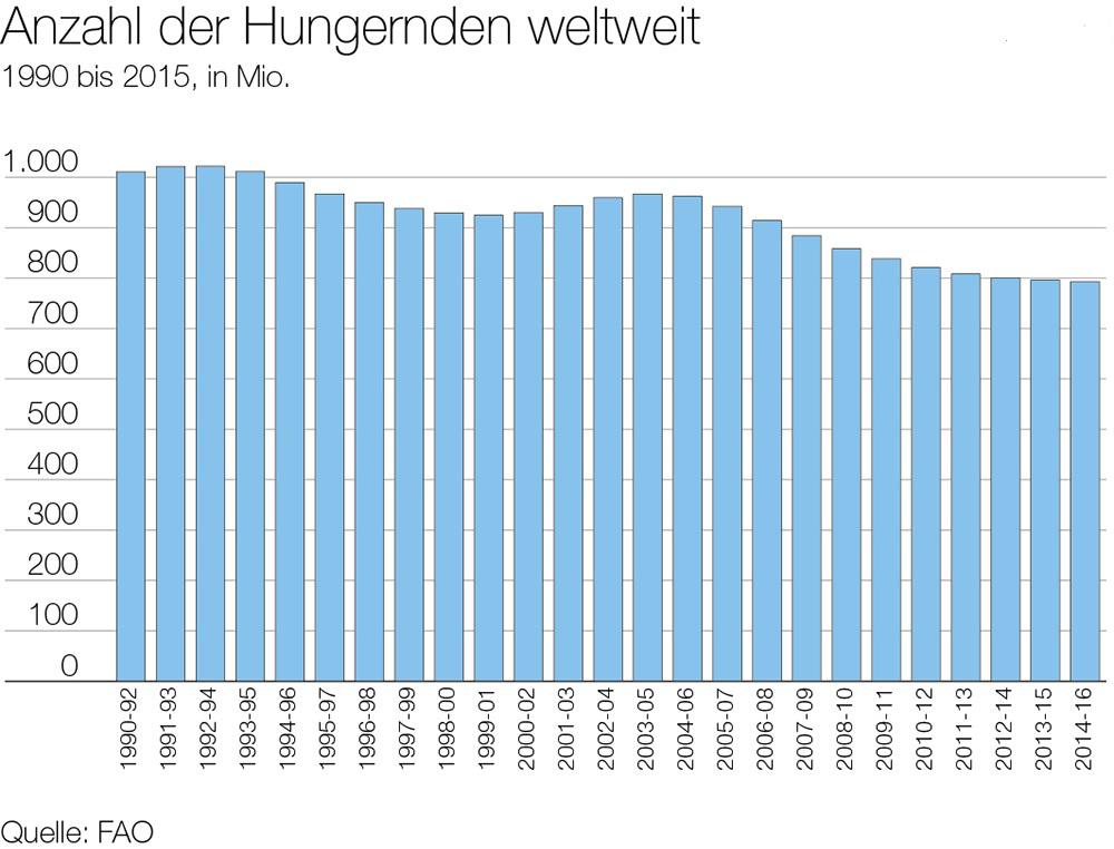 Abbildung 3: Leichte Abnahme der Hungernden weltweit seit Beginn der 1990er Jahre. Quelle