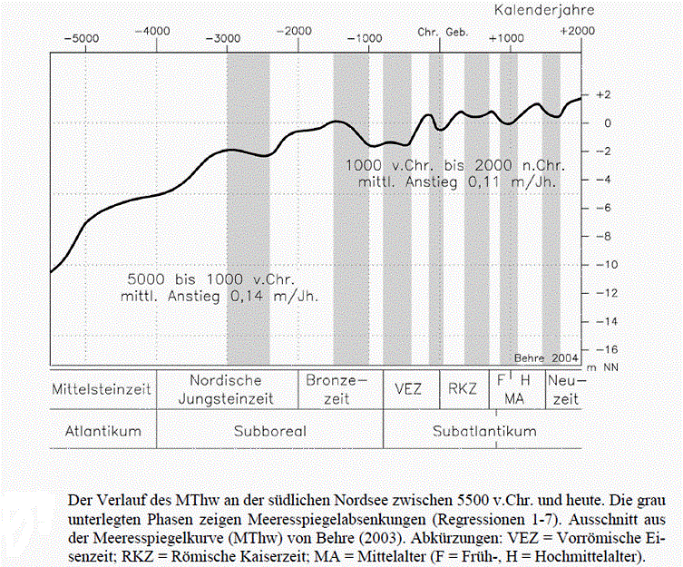 Abbildung 4: Tendenzieller Meeresspiegelanstieg an der deutschen Nordseeküste seit etwa 7.000 Jahren. Quelle