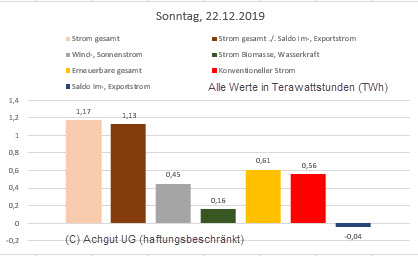 Sonntag, 22.12.2019: Anteil Erneuerbare an der Gesamtstromerzeugung 52,14 Prozent