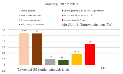 Samstag, 28.12.2019: Anteil Erneuerbare an der Gesamtstromerzeugung 34,26 Prozent