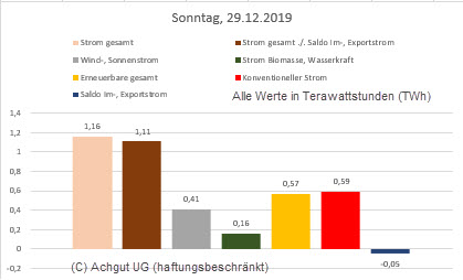 Sonntag, 29.12.2019: Anteil Erneuerbare an der Gesamtstromerzeugung 49,14 Prozent