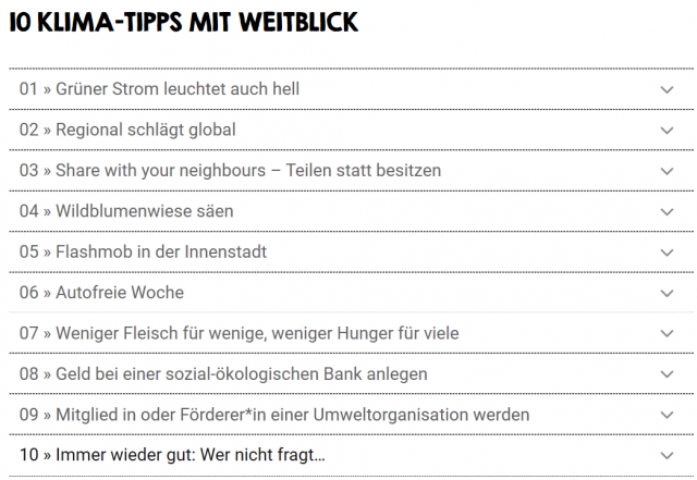 Klimatipps, die „Weitblick“ vermitteln sollen