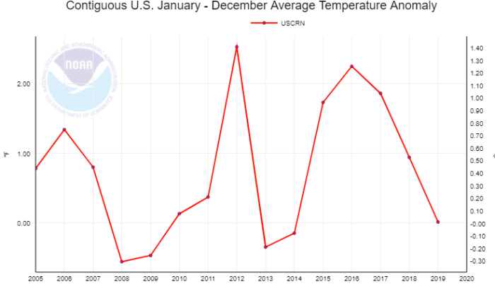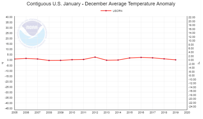 Link: https://wattsupwiththat.com/2020/01/15/while-noaa-nasa-claims-2019-as-the-second-warmest-year-ever-other-data-shows-2019-cooler-than-2005-for-usa/