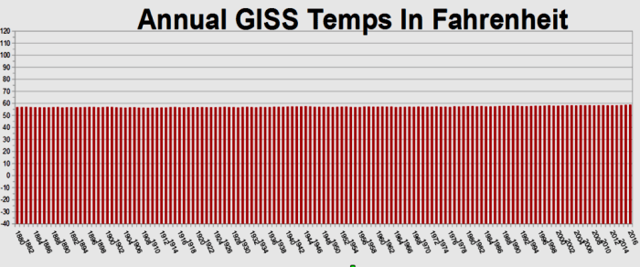 Meiner Ansicht nach ist die Presseerklärung von NOAA/NASA (nebst deren Diashow) inkonsistent. So können sie sich nicht einmal auf einen allgemeinen Referenz-Zeitraum für Vergleiche einigen. Einige Graphiken beziehen sich auf die Periode 1951 bis 1980, andere auf den Zeitraum 1981 bis 2010, um Anomalie-Plots zu erstellen. NOAA und NASA sind es der Öffentlichkeit schuldig, Klimadaten mit einem konsistenten Basiszeitraum zu präsentieren, widrigenfalls es sich nur um schlampige Wissenschaft handelt. NASA GISS hat sich permanent geweigert, den Basiszeitraum 1951 bis 1980 zu aktualisieren, wie es die NOAA getan hat, nämlich auf den Zeitraum 1981 bis 2010. Stur wie ein Panzer lehnt GISS eine solche Aktualisierung ab, obwohl sie wiederholt darob verurteilt worden ist.