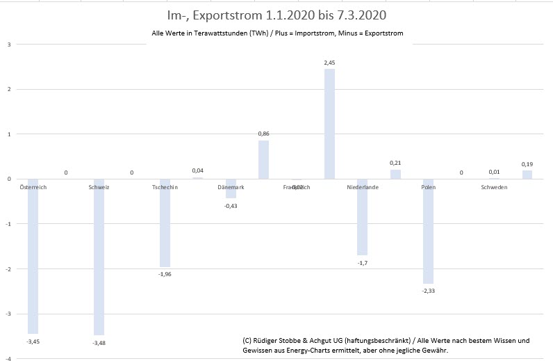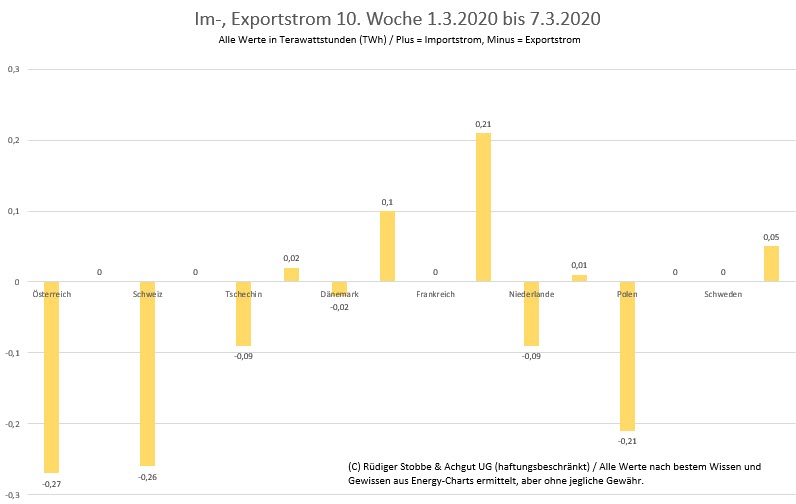 Hier wie immer die Tabelle mit den Detailzahlen der Energy-Charts und der daraus generierte Chart, die Import-/Exportwerte der Woche und die kumulierten Werte des bisherigen Jahres.