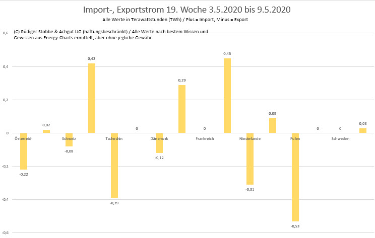 Heute exportiert Deutschland über die Mittagsspitze Strom. Selbstverständlich zu Billigpreisen. Höre ich da ein: „Aber wenigstens muss nicht noch Geld mitgegeben werden“? Ja richtig, das ist ein Trost. Der bittere Beigeschmack: Der Wind- und Sonnenstrom muss den Erzeugern gemäß EEG voll vergütet werden.