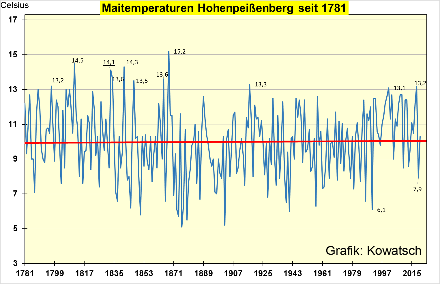 Diese Richtlinien sind sehr allgemein und können nicht jede mögliche Situation abdecken. Nehmen Sie deshalb bitte nicht an, dass das EIKE Management mit Ihnen übereinstimmt oder sonst Ihre Anmerkungen gutheißt. Wir behalten uns jederzeit das Recht vor, Anmerkungen zu filtern oder zu löschen oder zu bestreiten und dies ganz allein nach unserem Gutdünken. Wenn Sie finden, dass Ihre Anmerkung unpassend gefiltert wurde, schicken Sie uns bitte eine Mail über "Über Uns->Kontakt"Da hat Dr. Ullrich mit seiner Feststellung recht: Der Mai ist ein Monat, der noch nicht aus der kleinen Eiszeit herausgekommen ist.