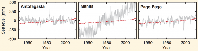 AR5: … In addition to regional inflences of vertical land motion on relative sea level change, some processes lead to land motion that is rapid but highly localized. For example, the greater rate of rise relative to the global mean at Manila (FAQ 13.1, Figure 1) is dominated by land subsidence caused by intensive groundwater pumping. Land subsidence due to natural and anthropogenic processes, such as the extraction of groundwater or hydrocarbons, is common in many coastal regions, particularly in large river deltas.