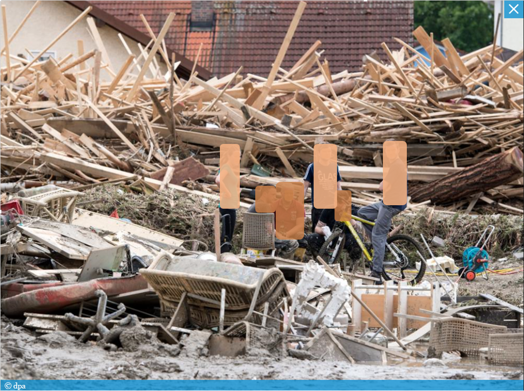 Wie man damit „umgeht“ lässt sich schon an einem Text zu einem Schadensbild zeigen: Obwohl es sich auf dem Bild eindeutig um schön zugesägte Bretter handelt, hat die Redaktion keine Hemmung, auf „umgefallene Bäume“ hinzuweisen, weil um die „Bewohner“ – beim ganz genauen Hinsehen erkennbar – zusätzlich auch wenige „Bäume“ liegen. Die Leser hält die Redaktion anscheinend für besonders dämlich, oder gar blind.