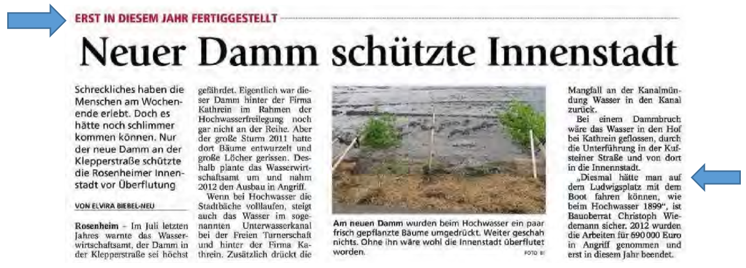 Bild 22 [6] Zeitungsartikel (Oberbayerisches Volksblatt 4.Juni 2013, Ausschnitt) der Flut von Rosenheim im Jahr 2013.