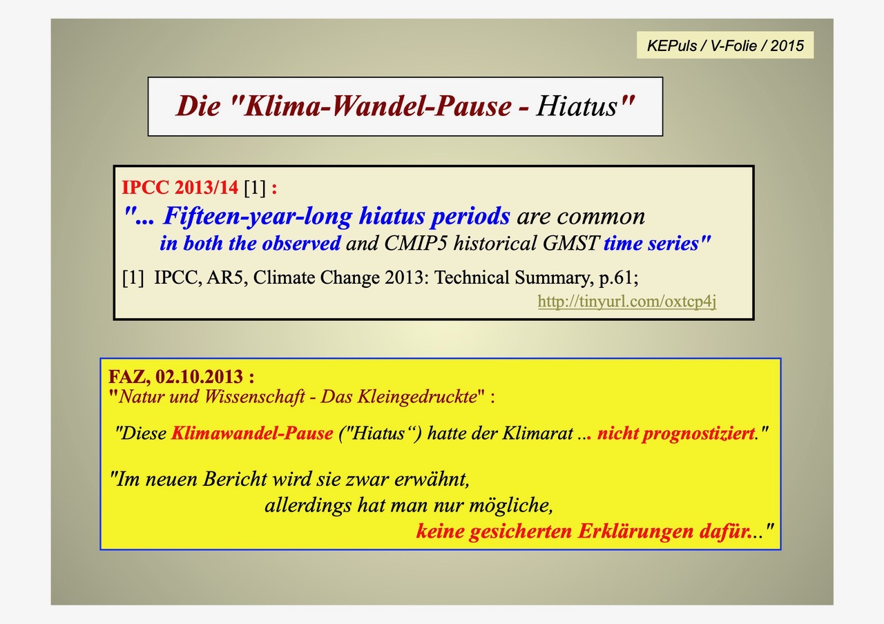 Die hier vom Referenten angesprochenen Erwärmungspause ist nun keine „Erfindung“ der Skeptiker, sondern eine Feststellung des IPCC :