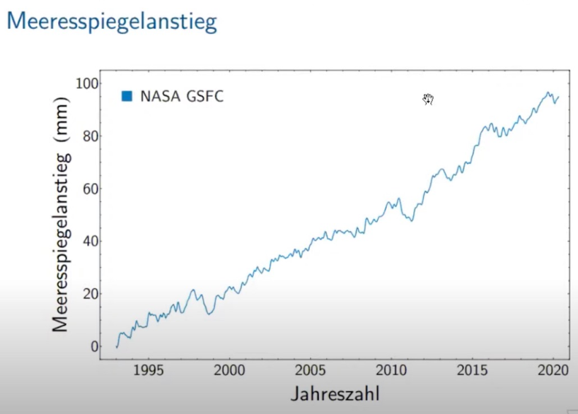 Es gibt keine Beschleunigung des seit Jahrtausenden steigenden Meeresspiegels. Aber das kommt beim Referenten nicht vor. Er verschweigt einfach, dass der Meeresspiegel seit dem Ende der Eiszeit ständig steigt, seit einigen tausend Jahren mit ca. 15 ± 15 Zentimetern pro Jahrhundert.