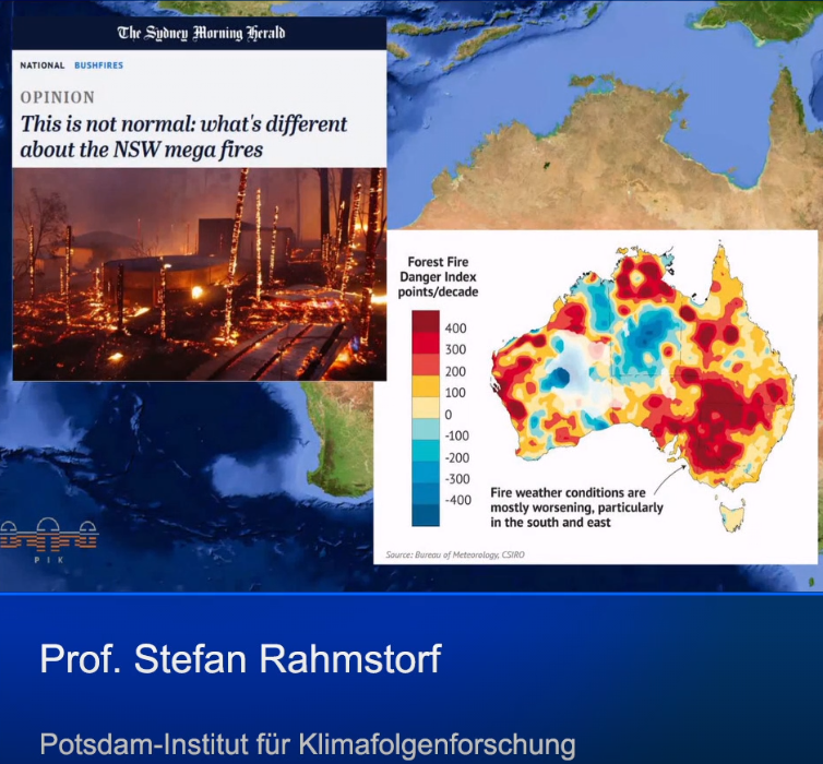 Obwohl er genau weiß, dass es nicht stimmt, stellt er es so dar, als wären alle aktuellen Extreme „Klimawandel-bedingte“ Ereignisse und auch ein Beleg dafür. So seine Darstellung zum Buschfeuer in Australien:
