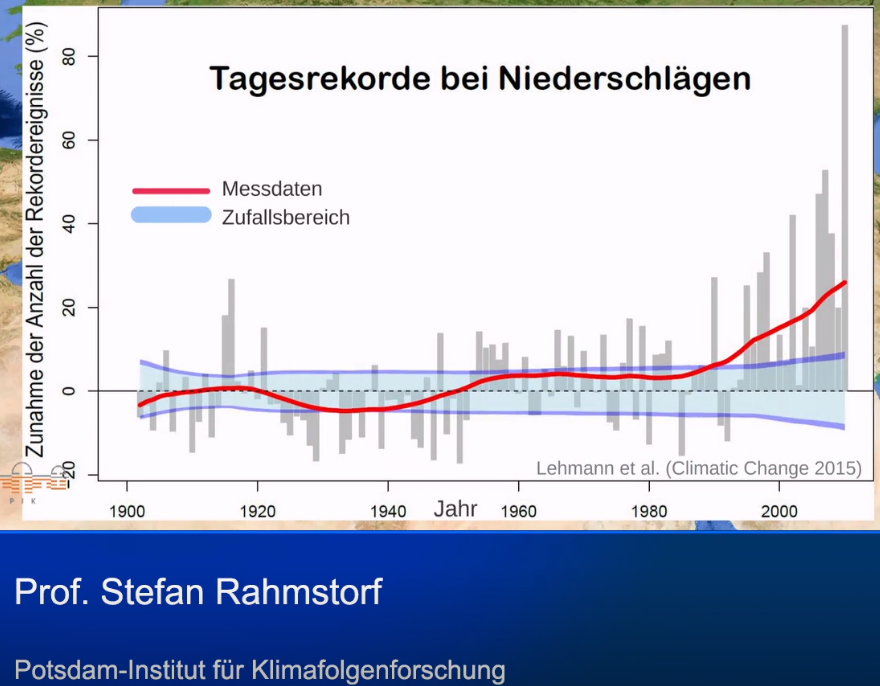 Rahmstorf: … wir haben also eine Zunahme von Rekordniederschlägen. Das sind dann solche Ereignisse wie 2016 in Braunsbach …