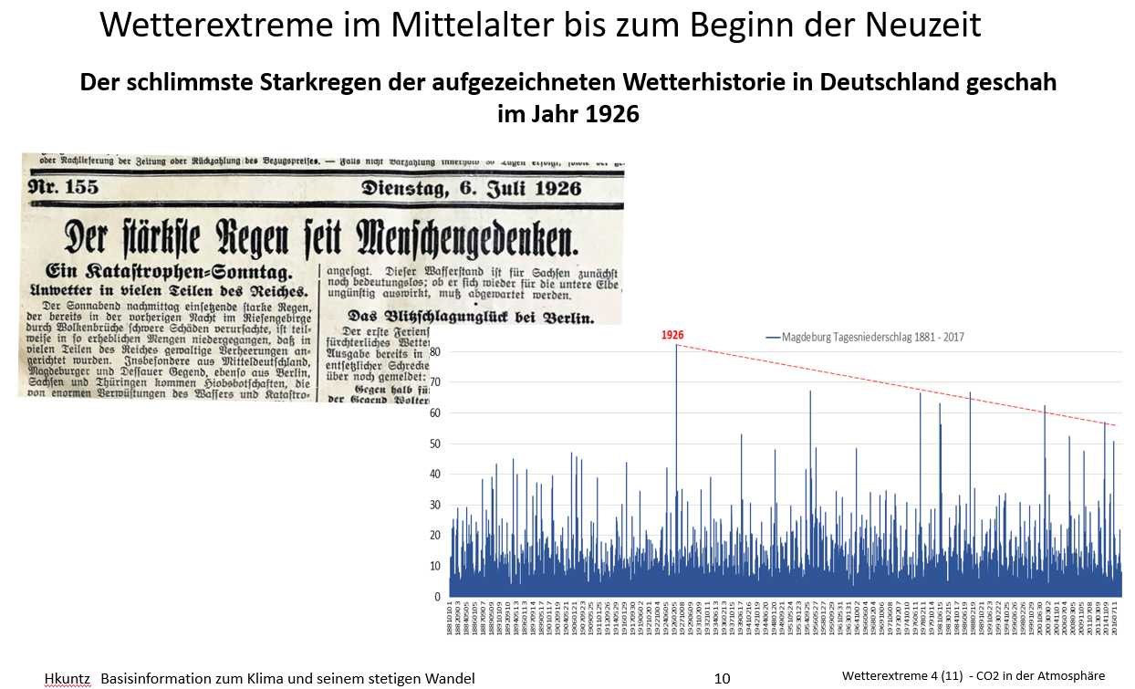 Historische Aufzeichnungen berichten, dass es früher viel stärkere Extremniederschläge gab: