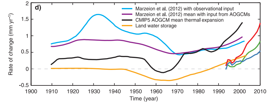 Bild 25 IPCC AR5 Figure 13.4 (Bildauszug): (d) are matched to earlier panels. (Updated) from Church et al., 2013)