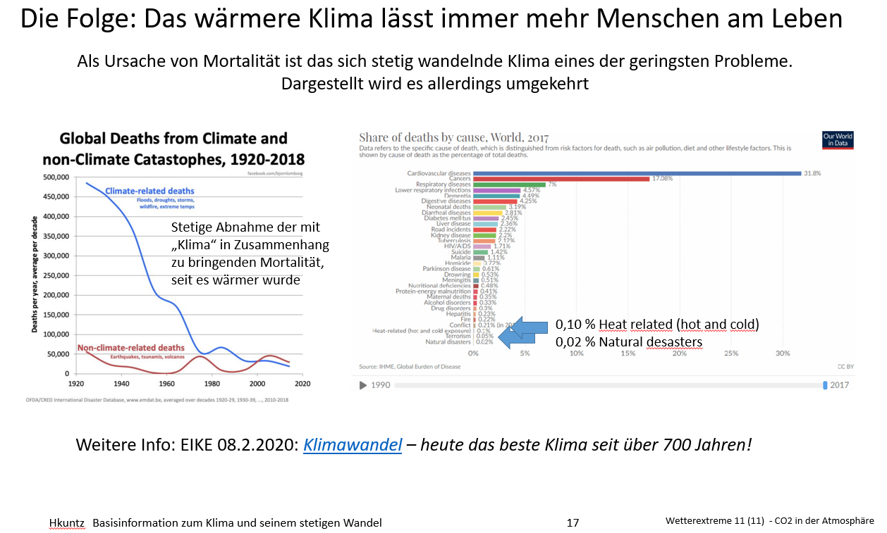 Er vergisst nur den Vergleich, was dies bezüglich Klimamortalität wirklich bedeutet, nämlich nichts. Und er vergisst auch, dass viel, viel mehr Personen an der Winterkälte (die abnimmt) sterben und dass gegen die „Hitzemortalität“ mit recht wenig Aufwand viel getan werden könnte: