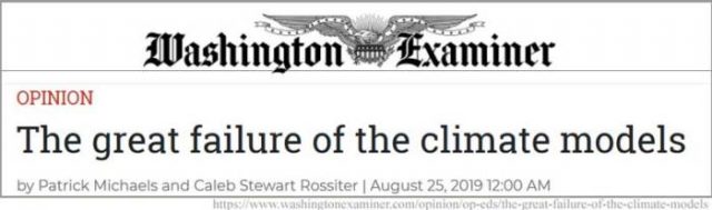 1. Pat Michaels und Caleb Rossiter veröffentlichen am 25. August 2019 im Washington Examiner ein Op-Ed-Stück, in dem sie die Meinungen ihrer Gruppe, der CO2-Koalition, zum Thema Klimawandel und CO2 darlegen.